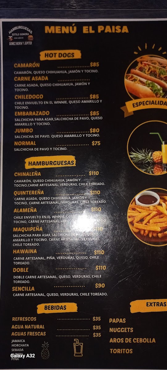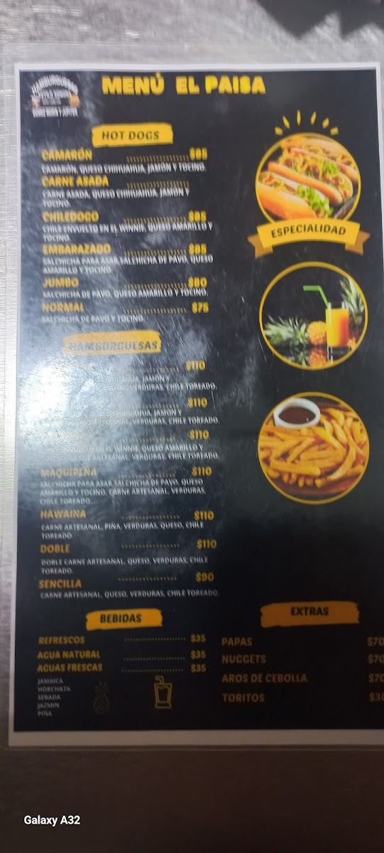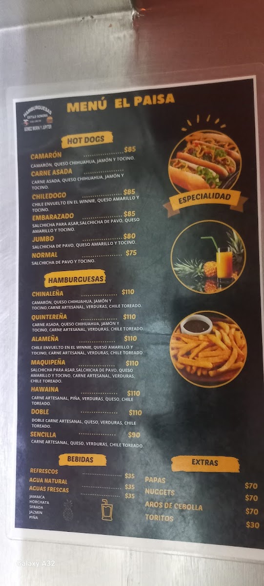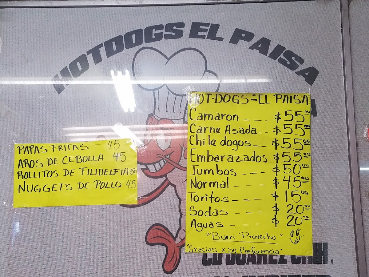 Welcome to Hot-Dogs El Paisa, where traditional fast food meets bold flavors in Juárez, Chih. Nestled on Blvd. Manuel Gómez Morín, this charming eatery specializes in gourmet hot dogs that redefine your typical fare. Each creation, like the Hot Dog Embarazado, combines savory turkey sausage wrapped in crispy bacon, offering a delightful crunch with every bite. For the adventurous, the Hot Dog Camarón brings the ocean to your plate, featuring succulent shrimp paired with creamy cheese.